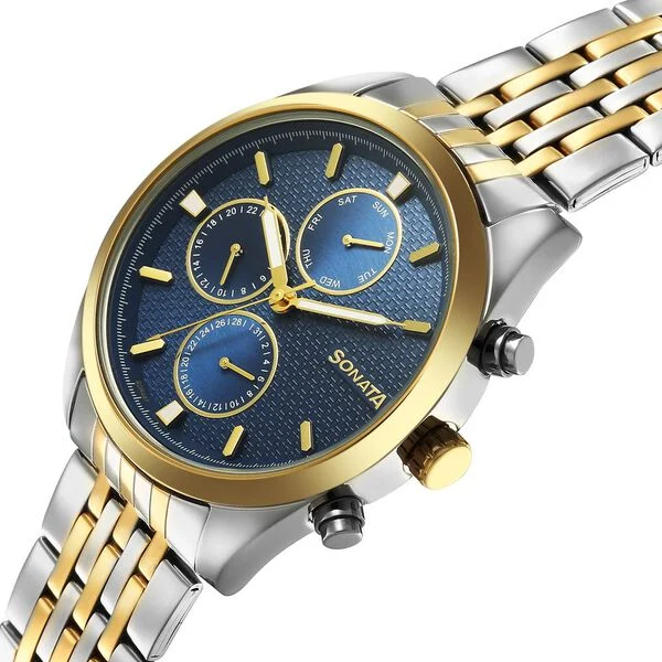 Name : Sonata Magna Quartz Multifunction Blue Dial Two Toned Stainless Steel Strap Watch For Men