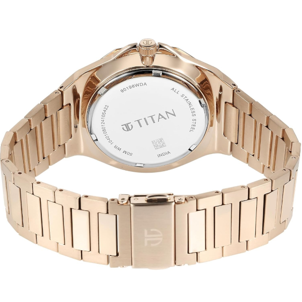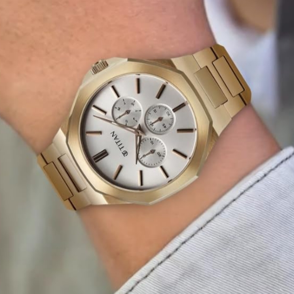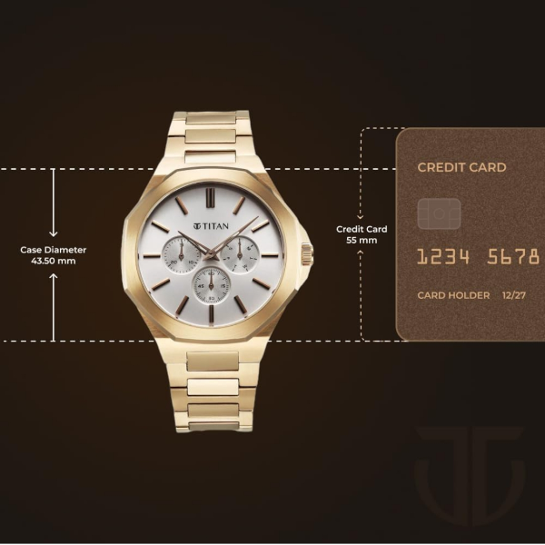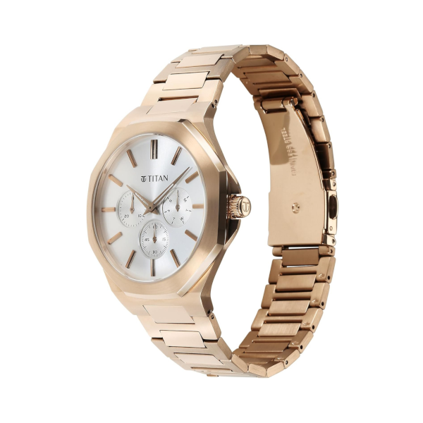 Name : Titan Classic Slim Multifunction Multifunction Silver Dial Carnation Gold Stainless Steel Strap Watch For Men