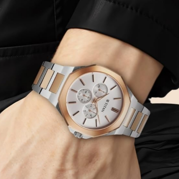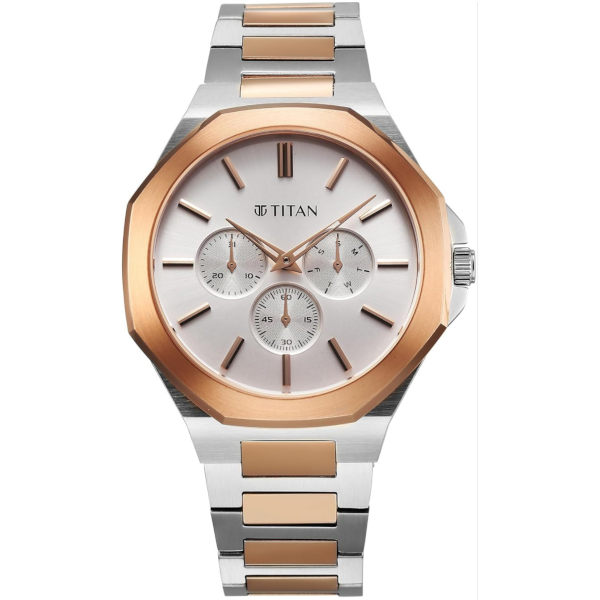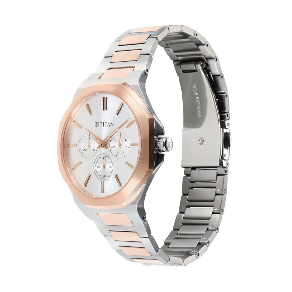 Name : Titan Classic Slim Multifunction Multifunction Silver Dial Multicoloured Stainless Steel Strap Watch For Men