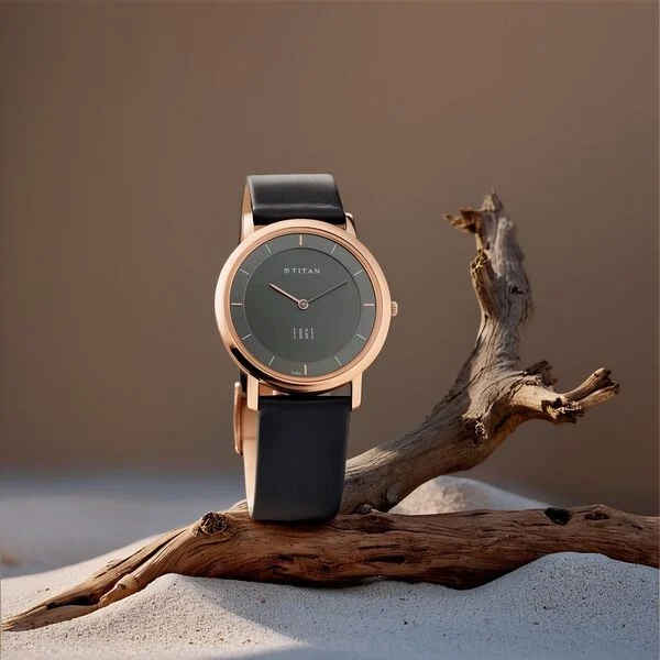Name : Titan Edge Quartz Analog Anthracite Dial Black Leather Strap Watch For Men