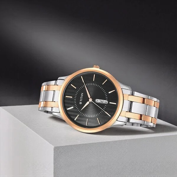 Name : Titan Karishma Quartz Analog Black Dial Two Toned Stainless Steel Strap Watch For MenGender : Men