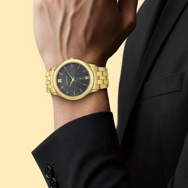 Name : Titan Quartz Analog with Day and Date Black Dial Metal Strap Watch for Men